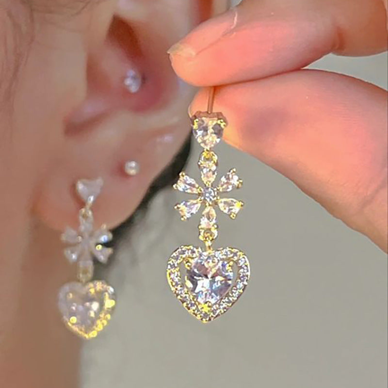 Love Heart Stud Earrings Female Super Zircon