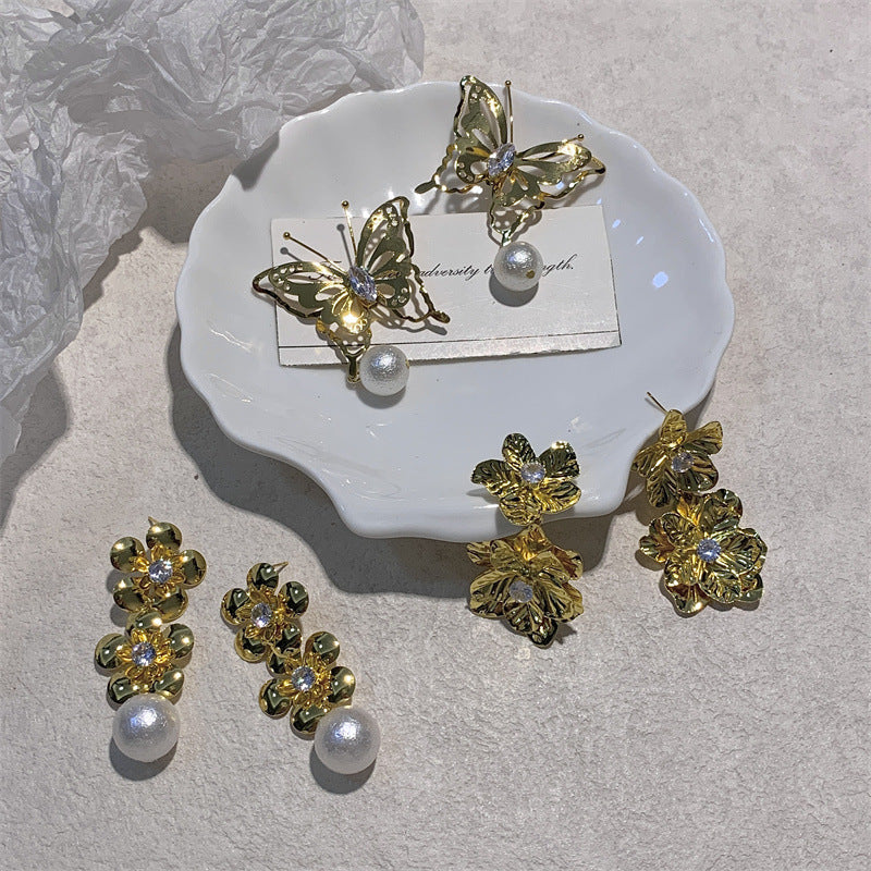 Retro Flower Pearl Stud Earrings Special-interest Design