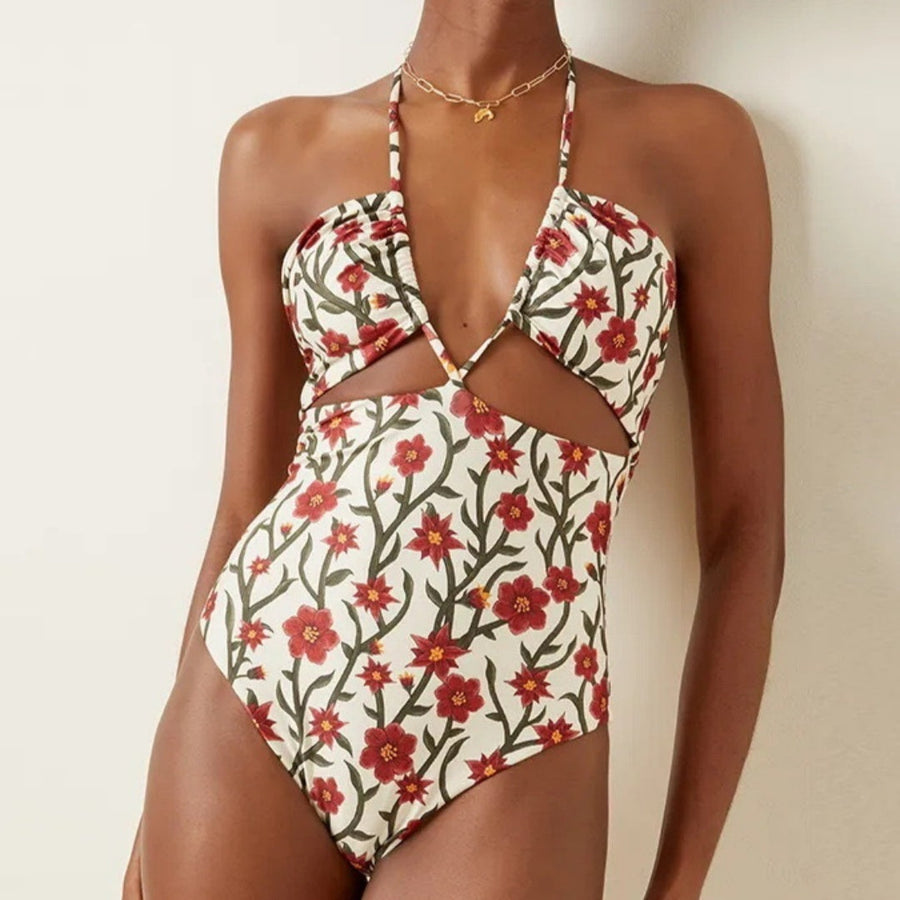 Triangle Printed Bikini For Women With Separate System And Hanging Neck Swimsuit