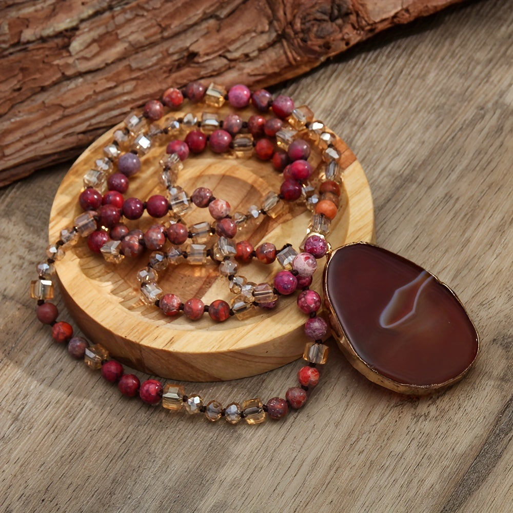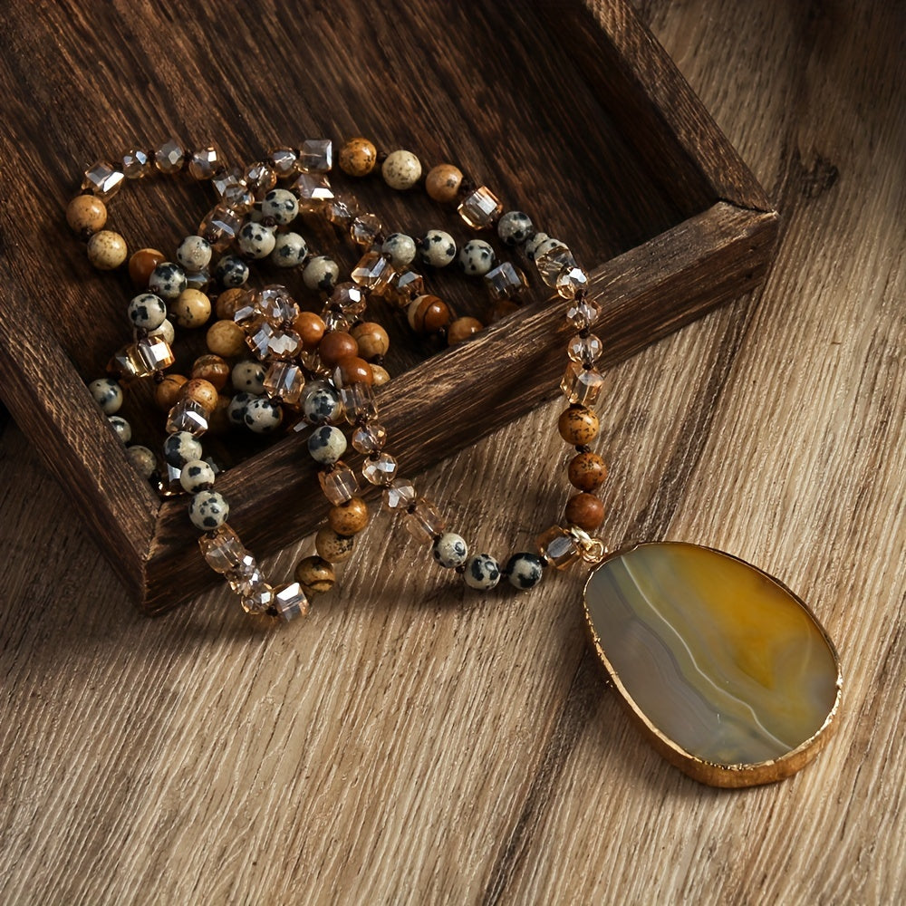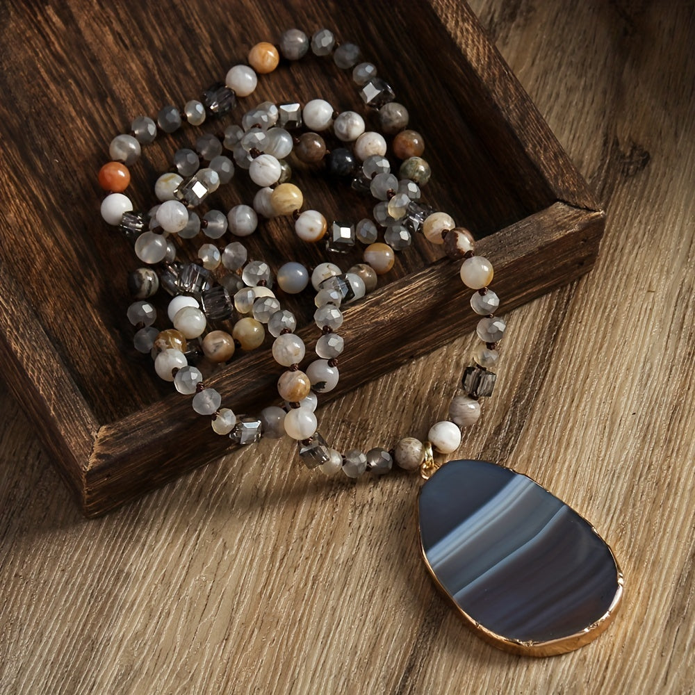 Bohemian Style 6mm Natural Stone Glass Knotted Striped Agate Water Drop Pendant Necklace