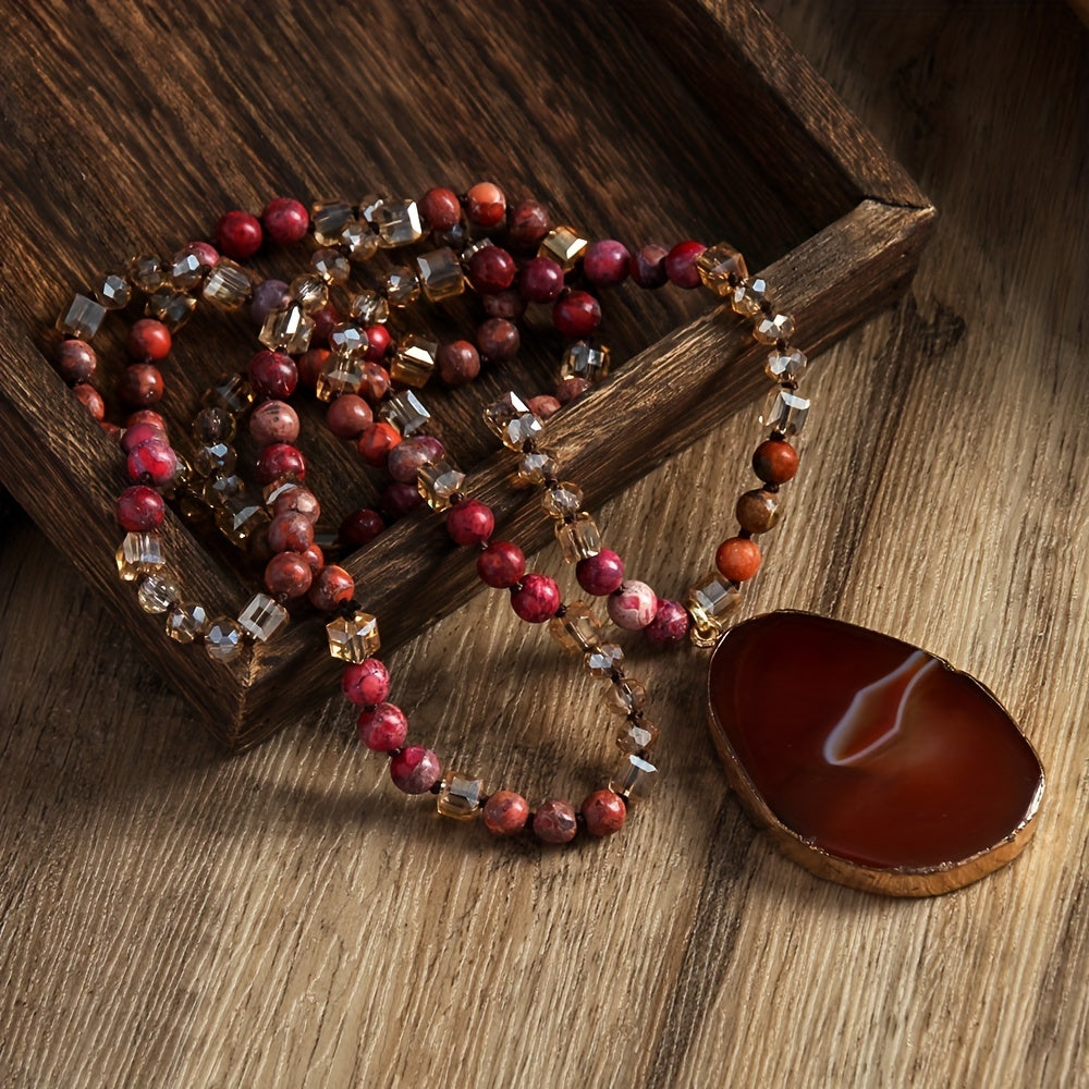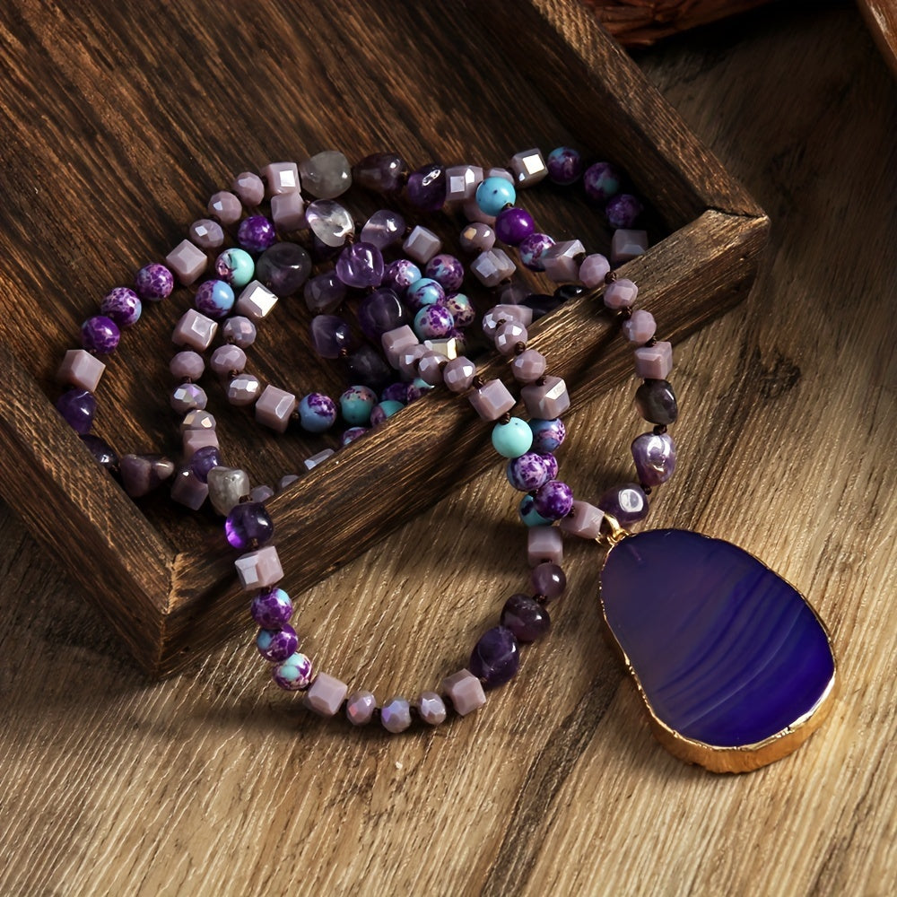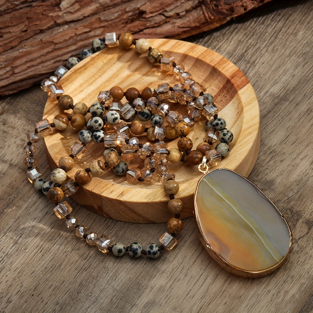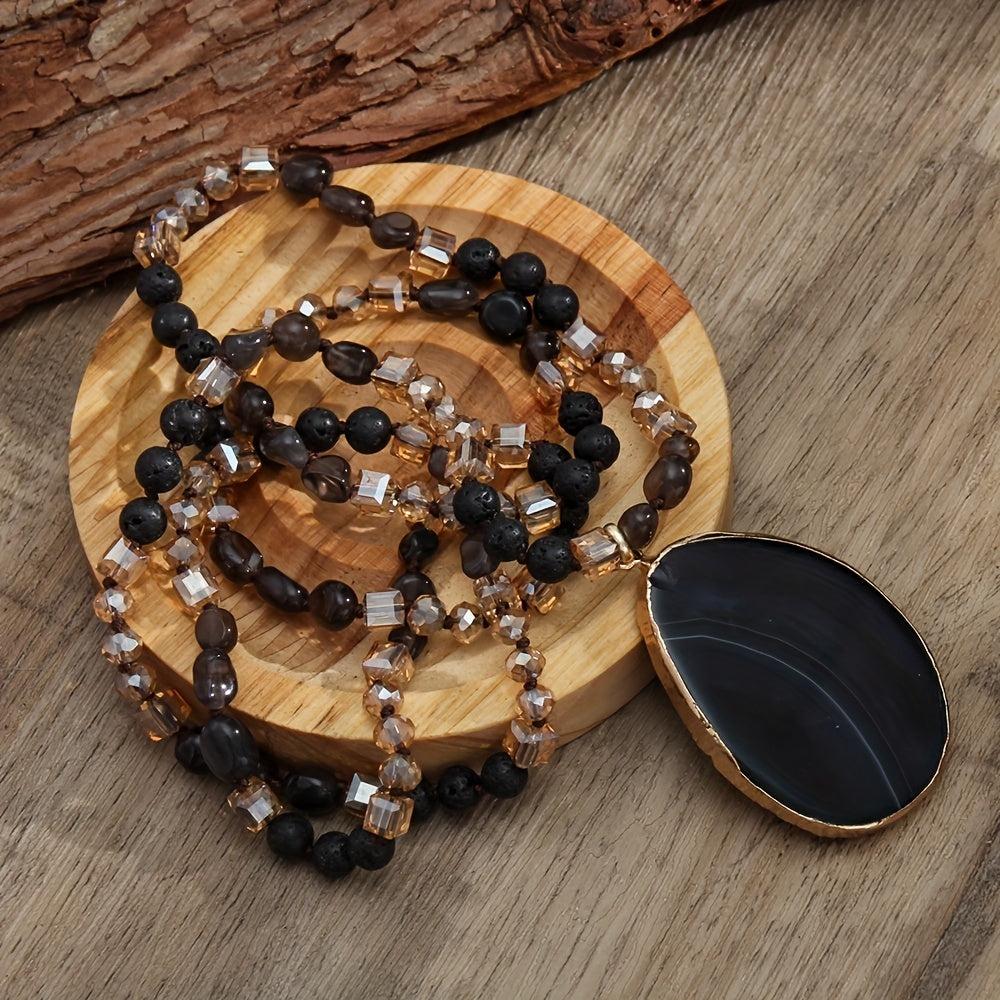 Bohemian Style 6mm Natural Stone Glass Knotted Striped Agate Water Drop Pendant Necklace