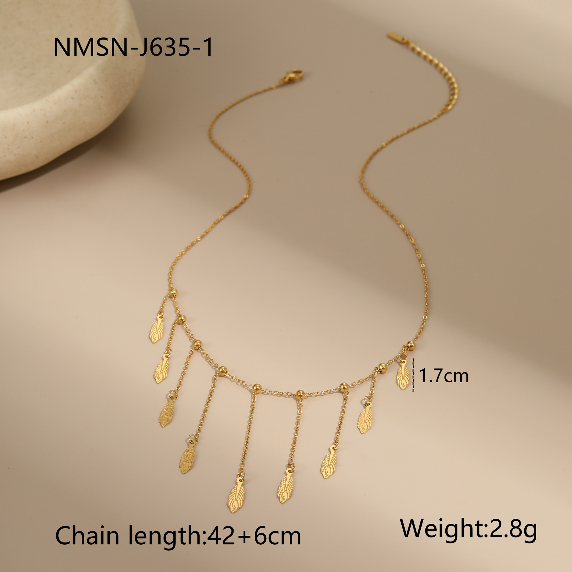 Product information: Treatment Process: Electroplating Color: NMSN-J635-1 gold necklace, NMSN-J635-2 Steel Necklace Applicable population: Female Pendant material: Stainless steel Chain style: Regular chain Material: Stainless steel Purity: 18K Shape: Geometry Popular elements: chain Style: fashion OL Perimeter: 41cm (inclusive)-50cm (inclusive)