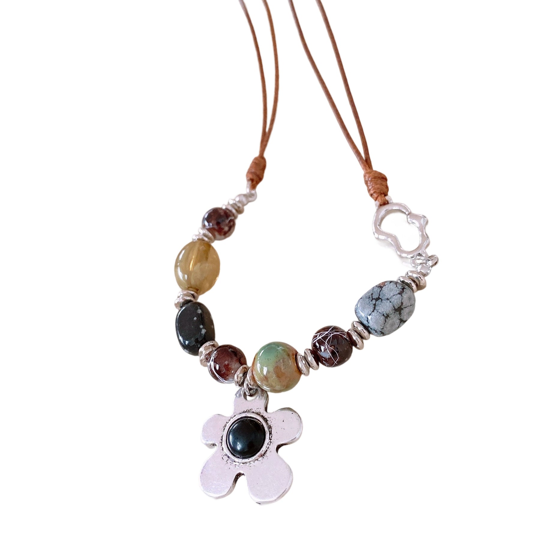 Color: necklace-Brown-silver-black