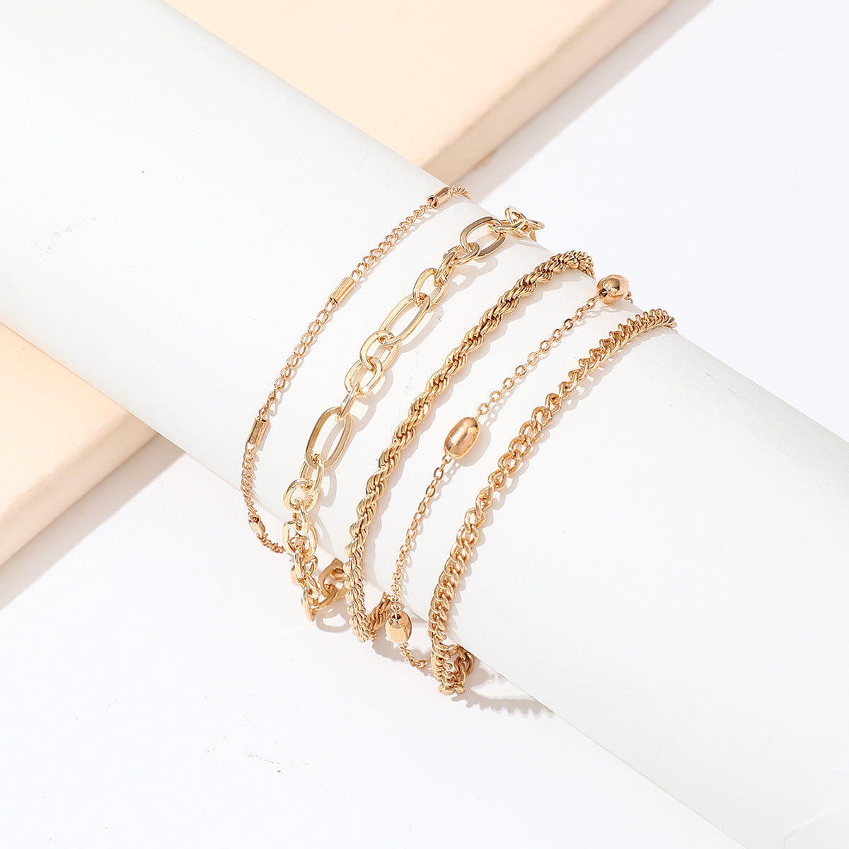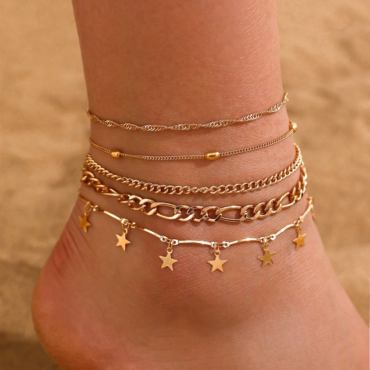 Alloy Anklet Hemp Flowers Chain 5-piece Set
