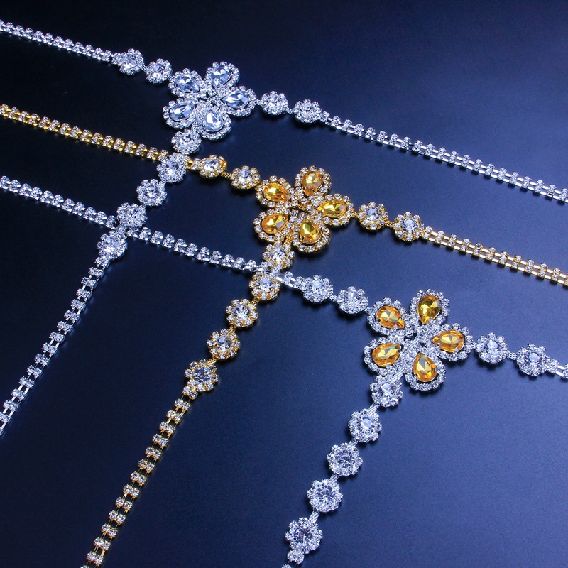 Product information: Treatment Process: Electroplating Type: body chains Color: yellow underwear, white underwear Material: Alloy Inlaid material: alloy inlaid artificial gem/semi-precious stone Applicable occasions for gifts: wedding, travel commemoration, others Style: Women's Size: silver, gold Shape: Geometric Style: European and American
