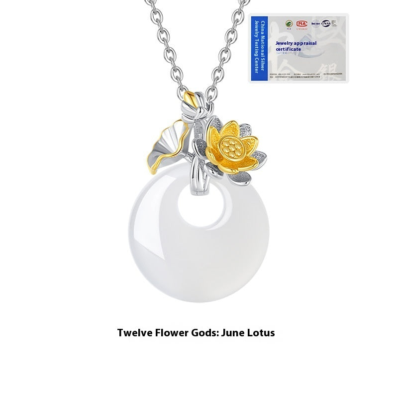 The 12 Floras White Chalcedony Peace Buckle S925 Silver Necklace