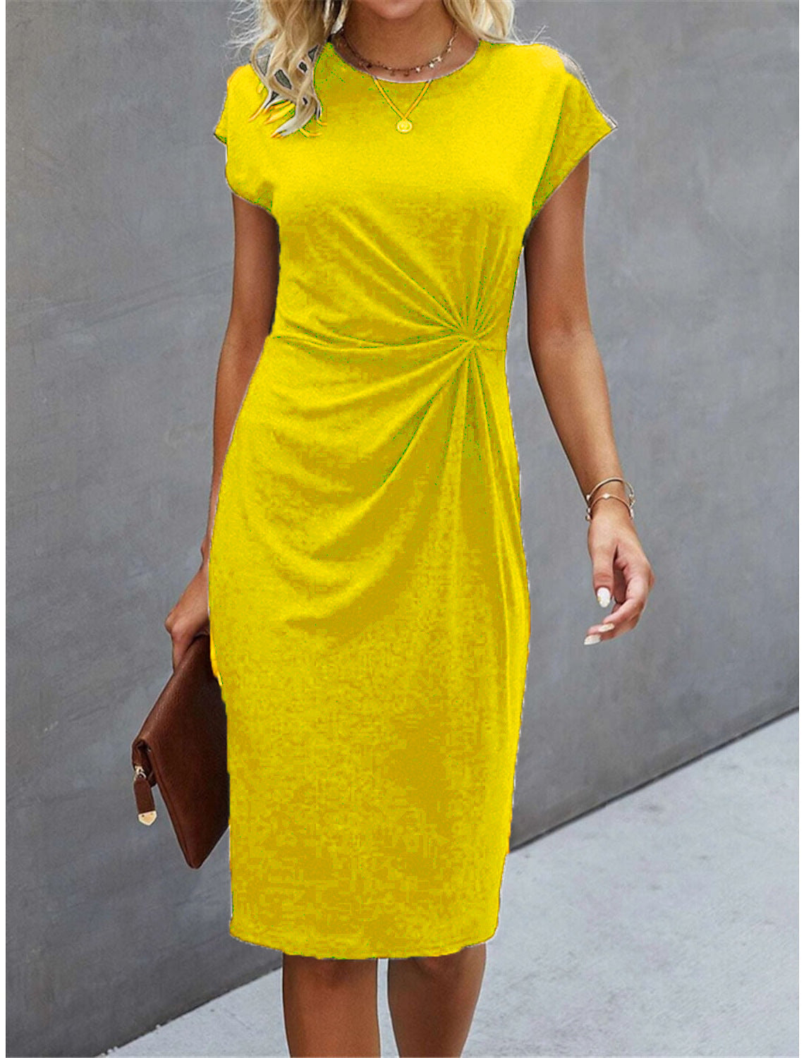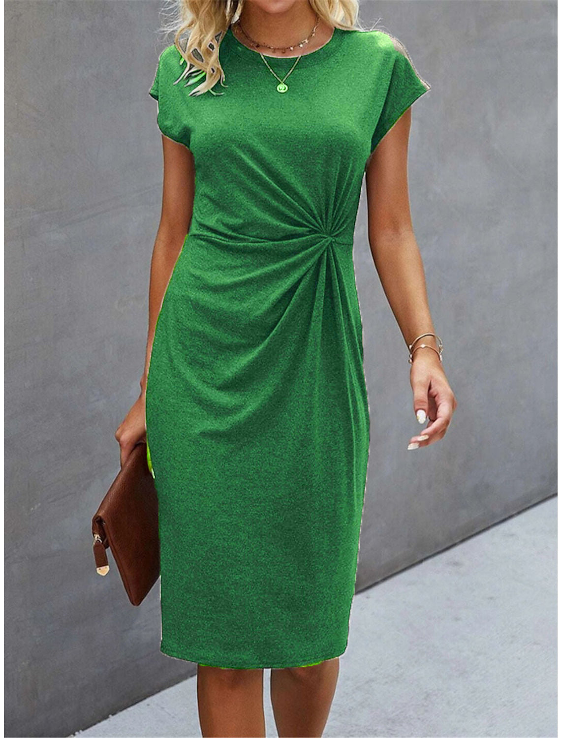 Women's Casual Tight Front Knot Round Neck Mid-length Dress